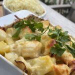 Tartiflette: Kartoffelauflauf mit Wein-Sahne-Sauce und Lachs