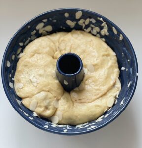 • Rolle in die Gugelhupf Backform setzen (ich empfehle die emaillierte Form von Dr. Oetker)