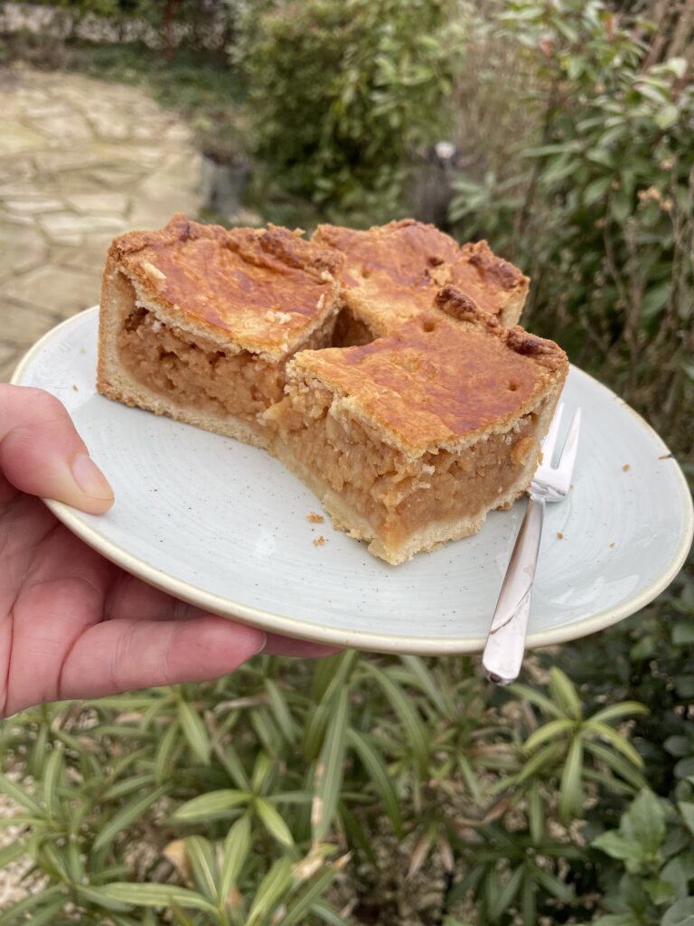 Was diesen Apfelkuchen so besonders macht? Ein Kniff, den viele von traditionellen Mohn- oder Nussstrudeln kennen: In den Teig wandern saure Sahne und ein kleiner Anteil Schweineschmalz.