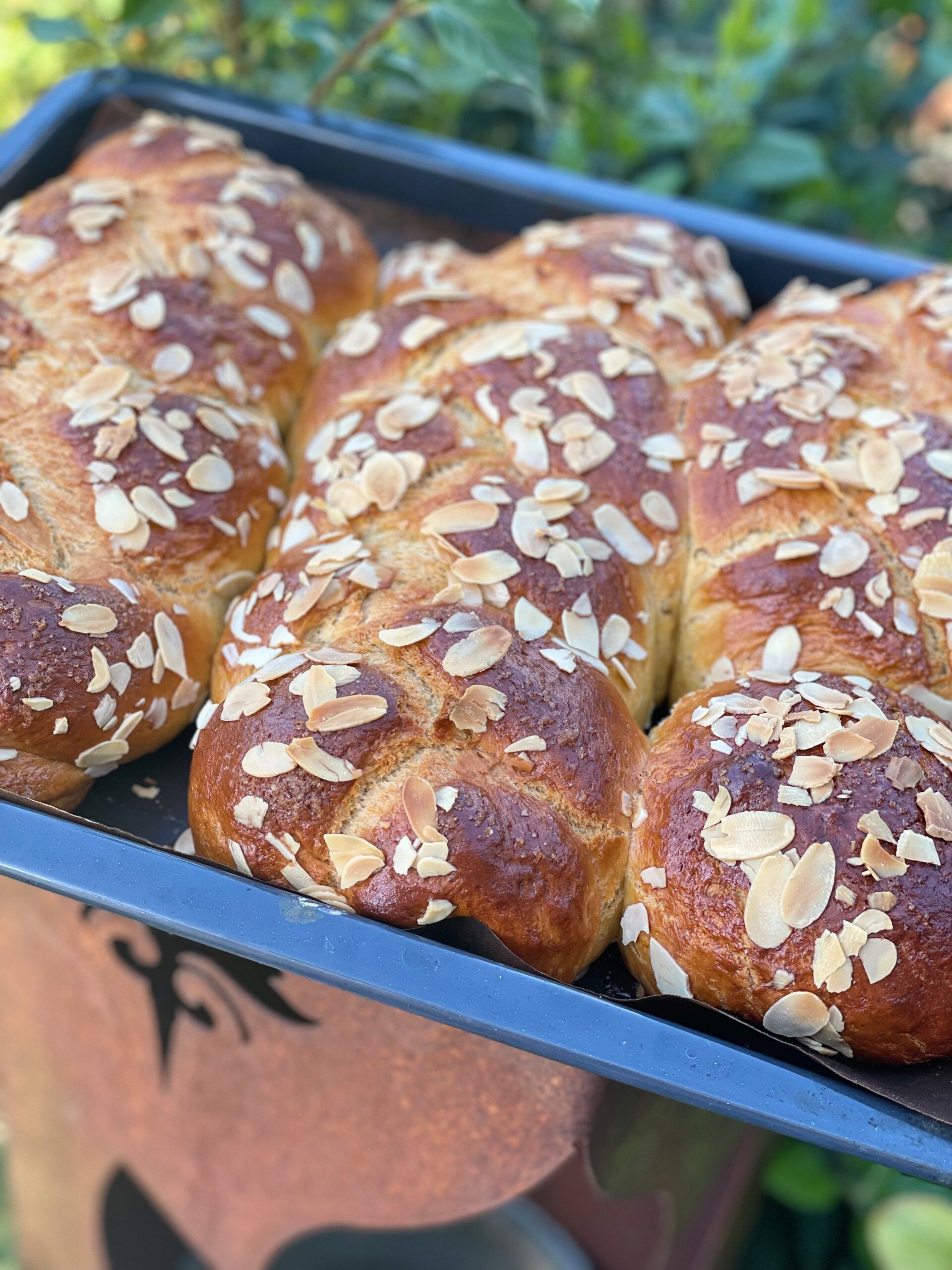 Der Teig eignet sich übrigens auch für Butterkuchen, mit Schokostücken auch für Schokobrötchen, Gugelhupf oder, gefüllt mit Nussnugatcreme, Nussfülle oder Quarkfülle, perfekt für andere Gebäcke.