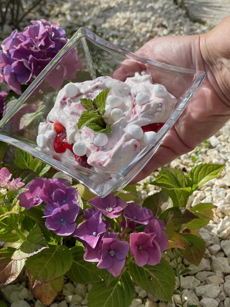 • Eaton Mess: himmlisches Quarkdessert Schlagsahne und Himbeeren